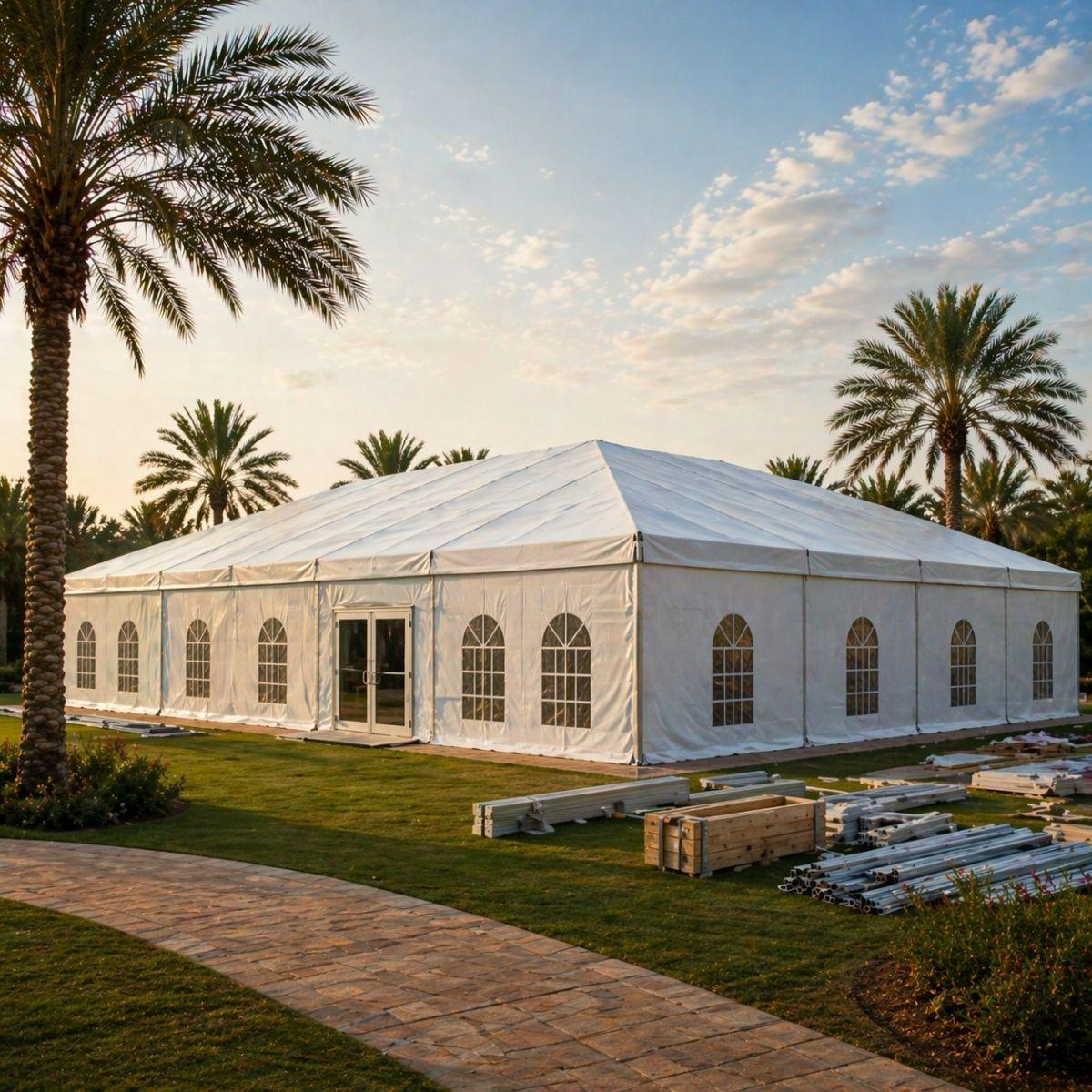 Temporary tent development project in Dubai involving approximately 10,000 sq ft of semi-permanent structures designed for event operations, short-term storage, and ancillary facilities.